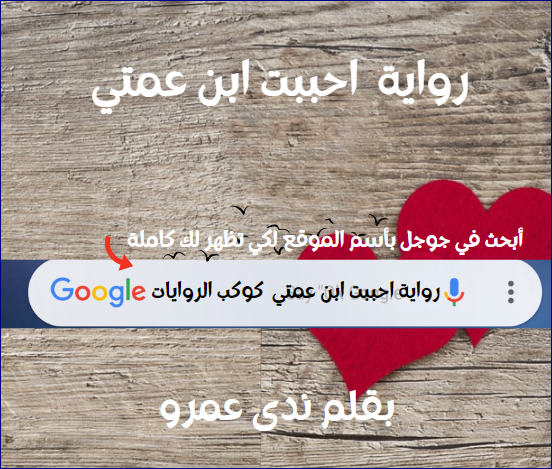 - يتبع الفصل التالي اضغط على ( رواية احببت ابن عمتي ) اسم الرواية