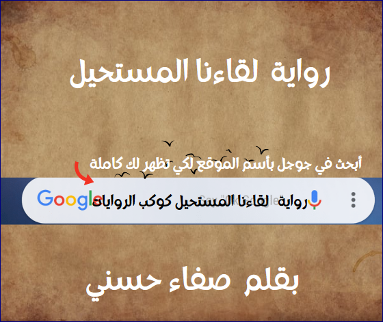 - يتبع الفصل التالي اضغط على ( رواية لقاءنا المستحيل ) اسم الرواية